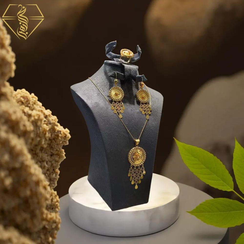 أضيفي لمسة من الرقي والفخامة إلى إطلالتك مع هذا الطقم الذهبي الساحر ، ذهب عيار 21 قيراط ، بوزن 30،3 جرام ، من مجموعة بحر الذهب