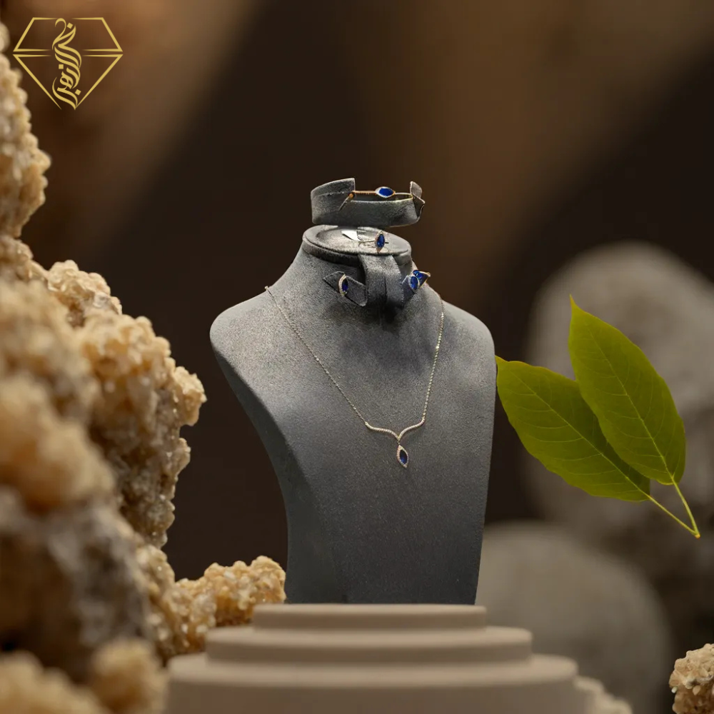 بريق الذهب و سحر الحجر الازرق تألقي في مناسباتك الخاصة بهذا الطقم الفريد الذي يضيف لمسة من الجمال والتميز , طقم ايطالي عيار 18 قيراط . بوزن 3.7 جرام . من مجموعة بحر الذهب